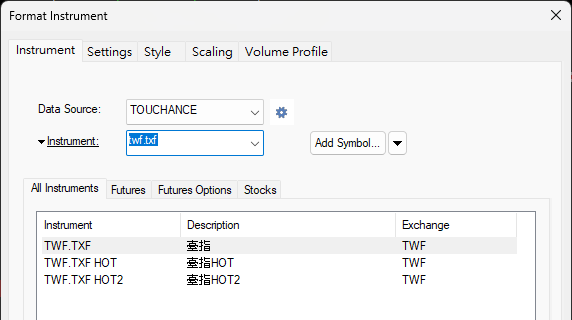2. 左側展開 Futures > TOUCHANCE 或搜尋 TXF