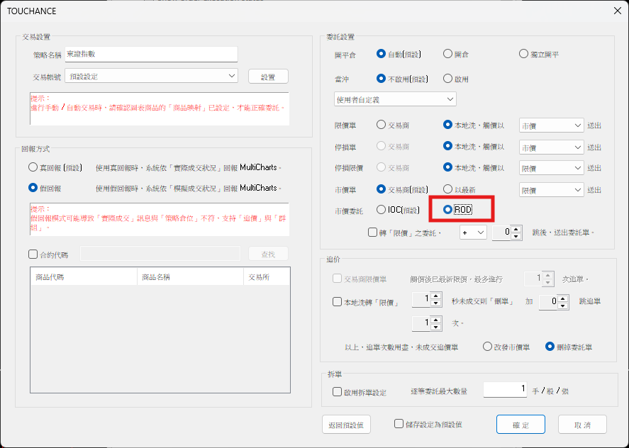 無法正常下單東證指數的解法:將市價委託改為 ROD